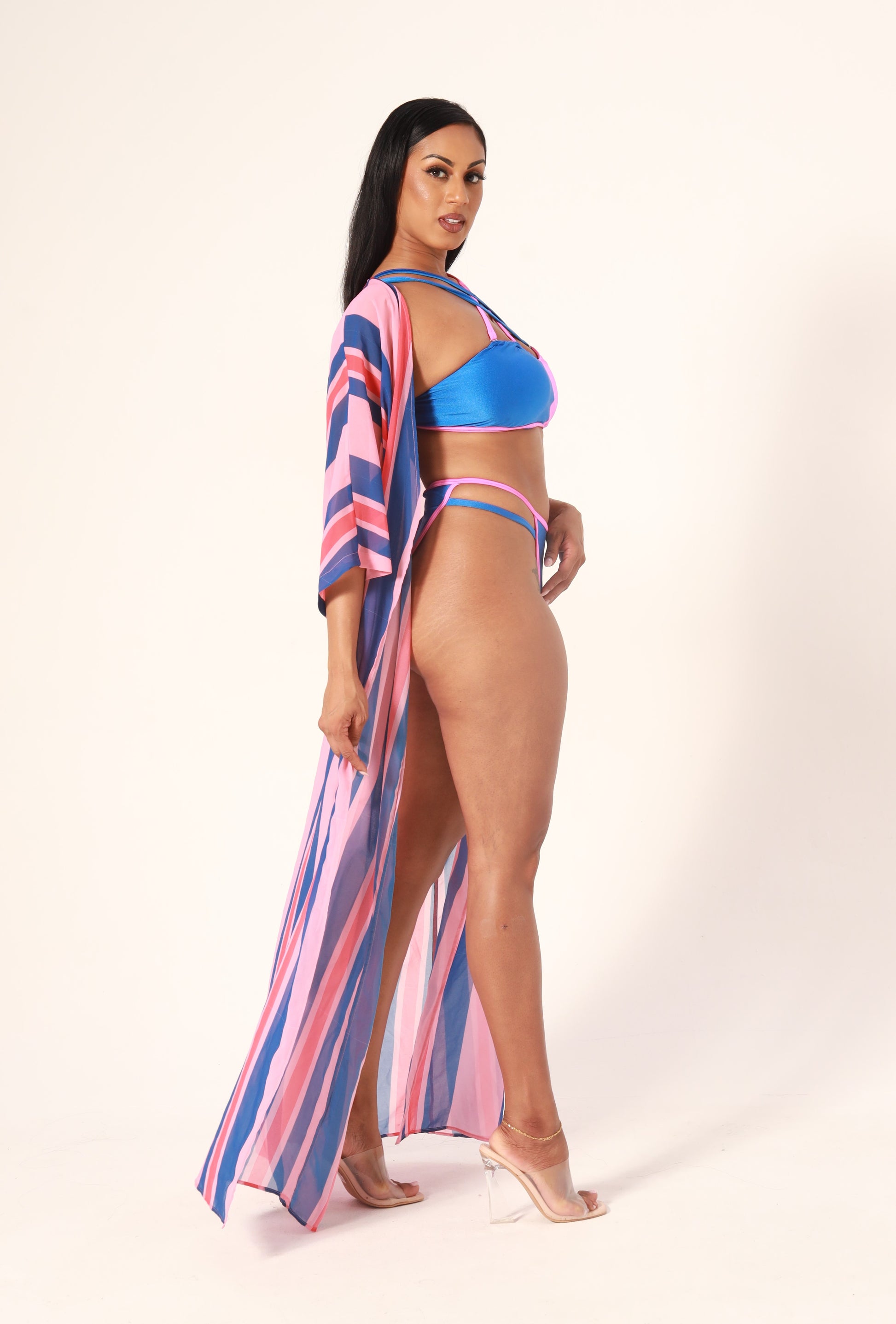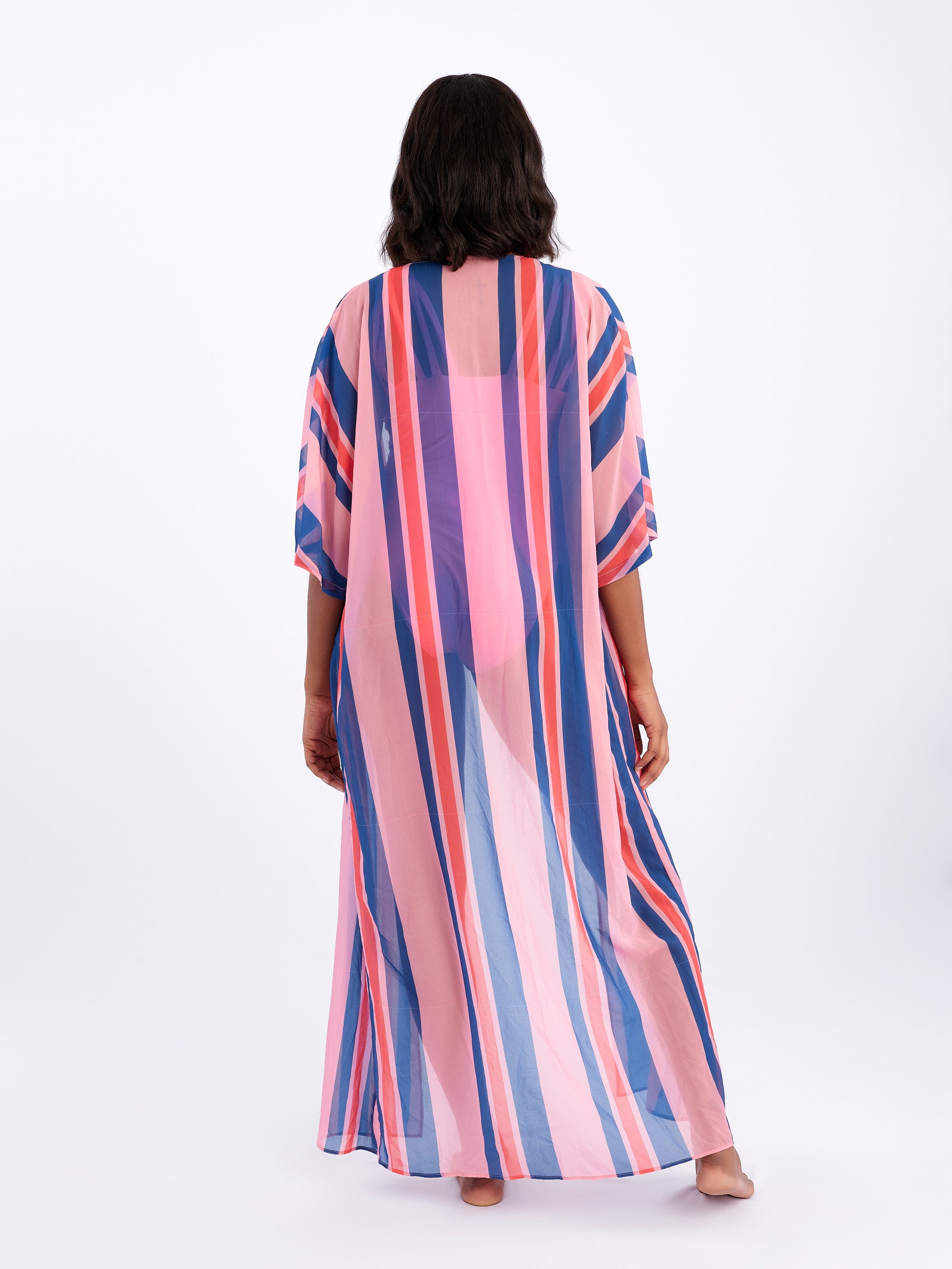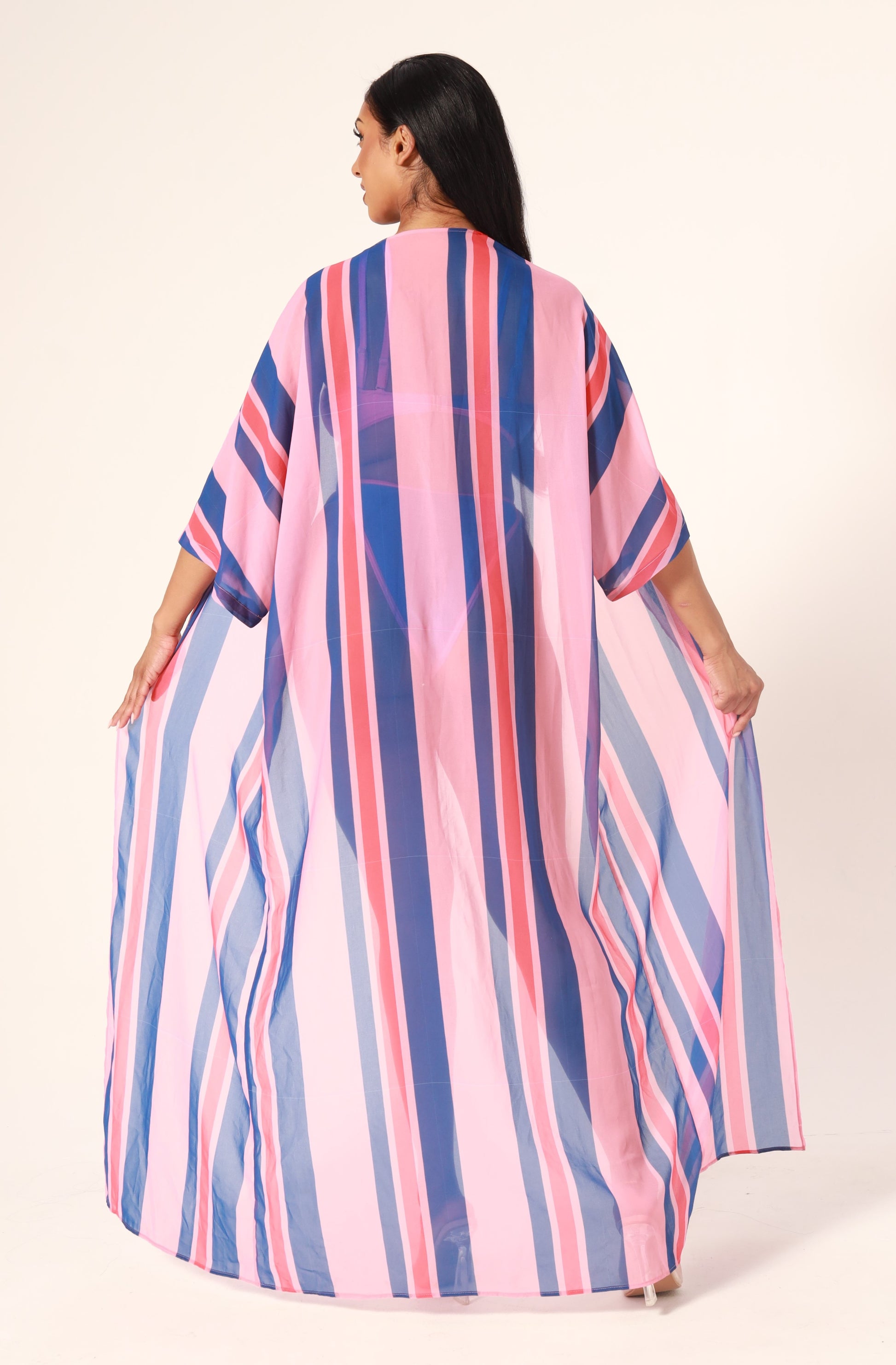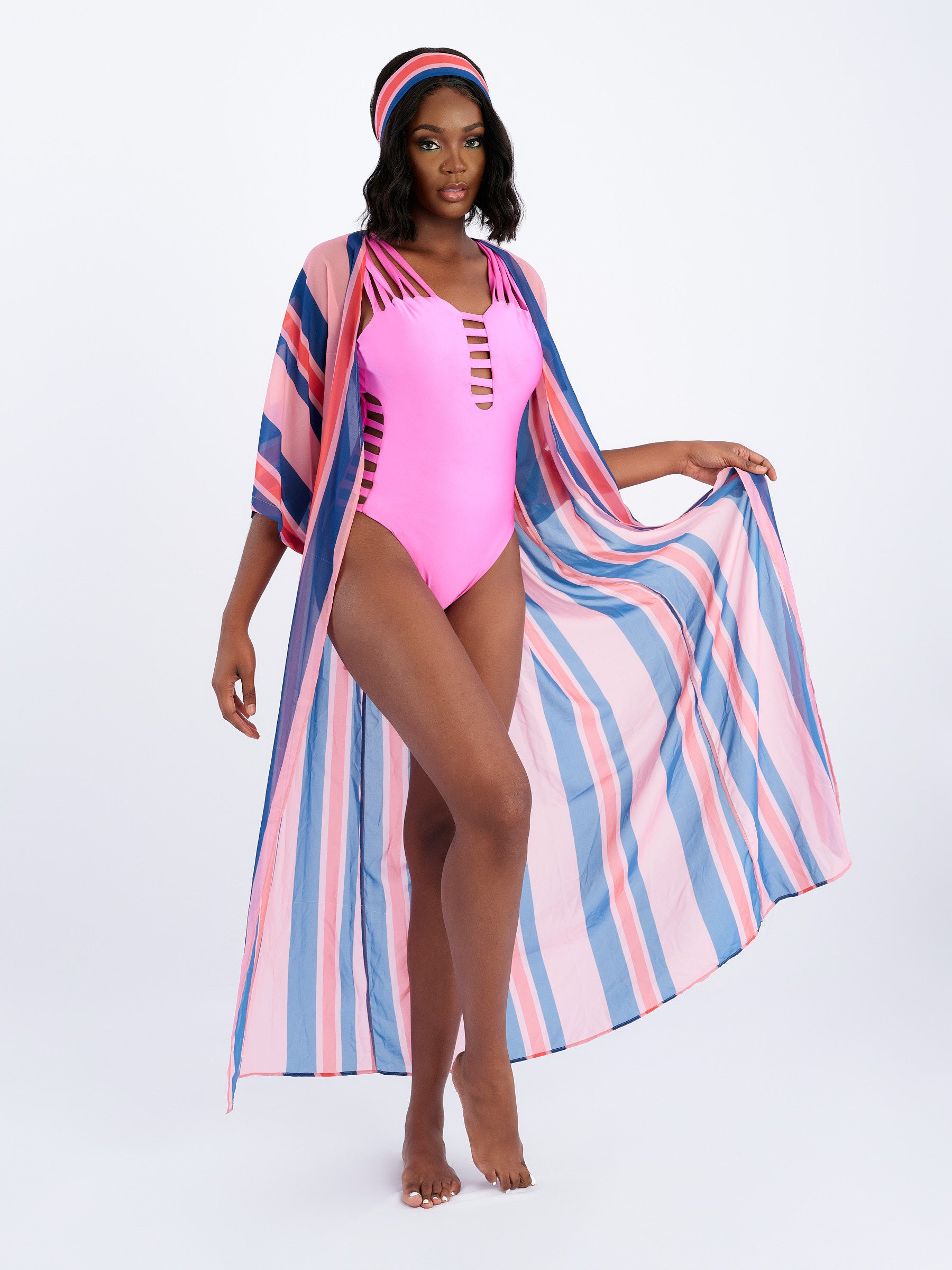 Sunset Robe is the mirror of the pink, romantic, and dreamy sunset at the horizon of a deep blue sea. It goes very well on top of the pink sun swimwear and the sunset jumpsuit.