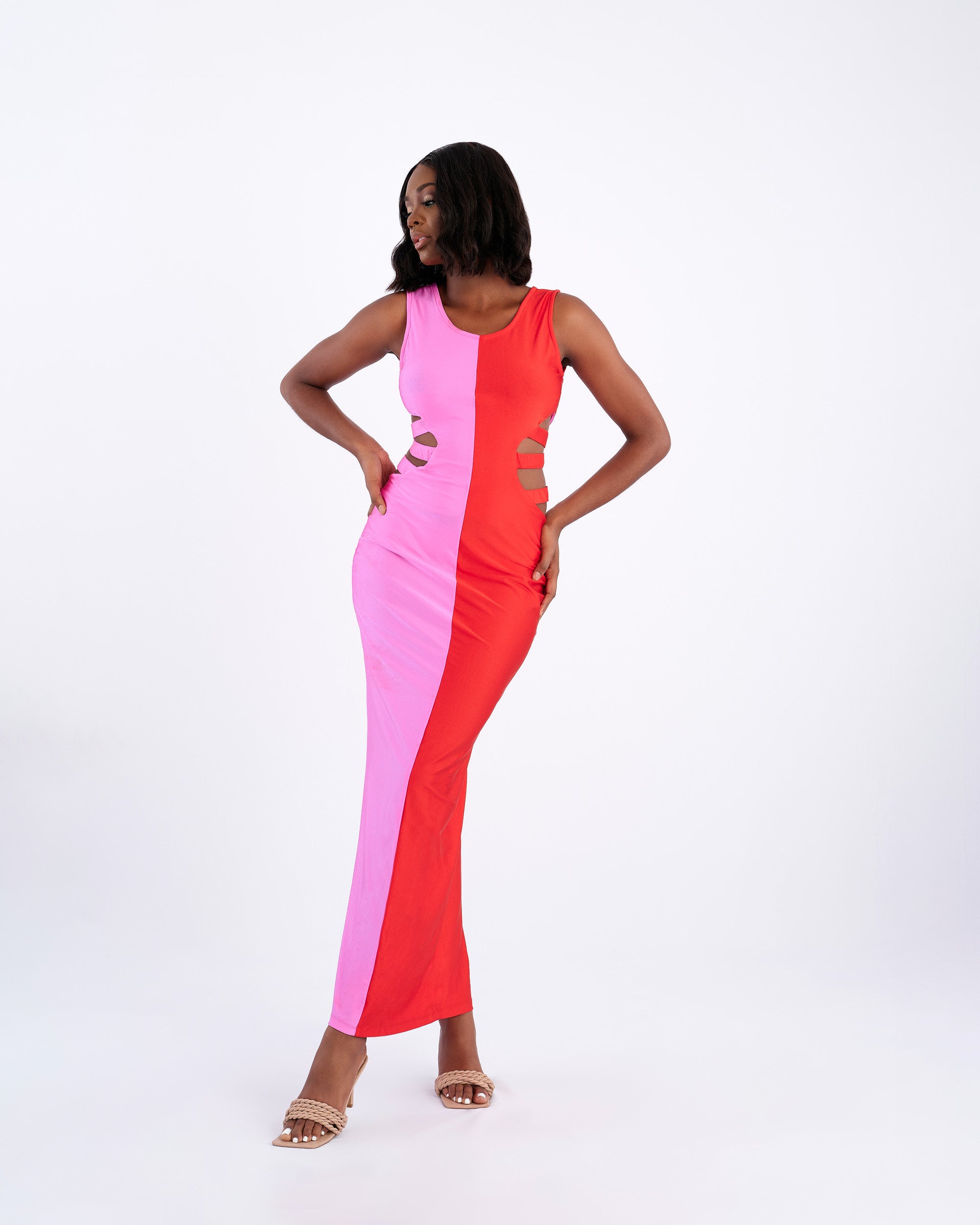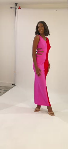 The Eclipse Queen Dress is simply stunning, with two bold colors, this dress hugs the body and embrace the woman shape perfectly. The sides cutout make the design just distinctive, and a closet must have for the woman who like to look fabulous.
